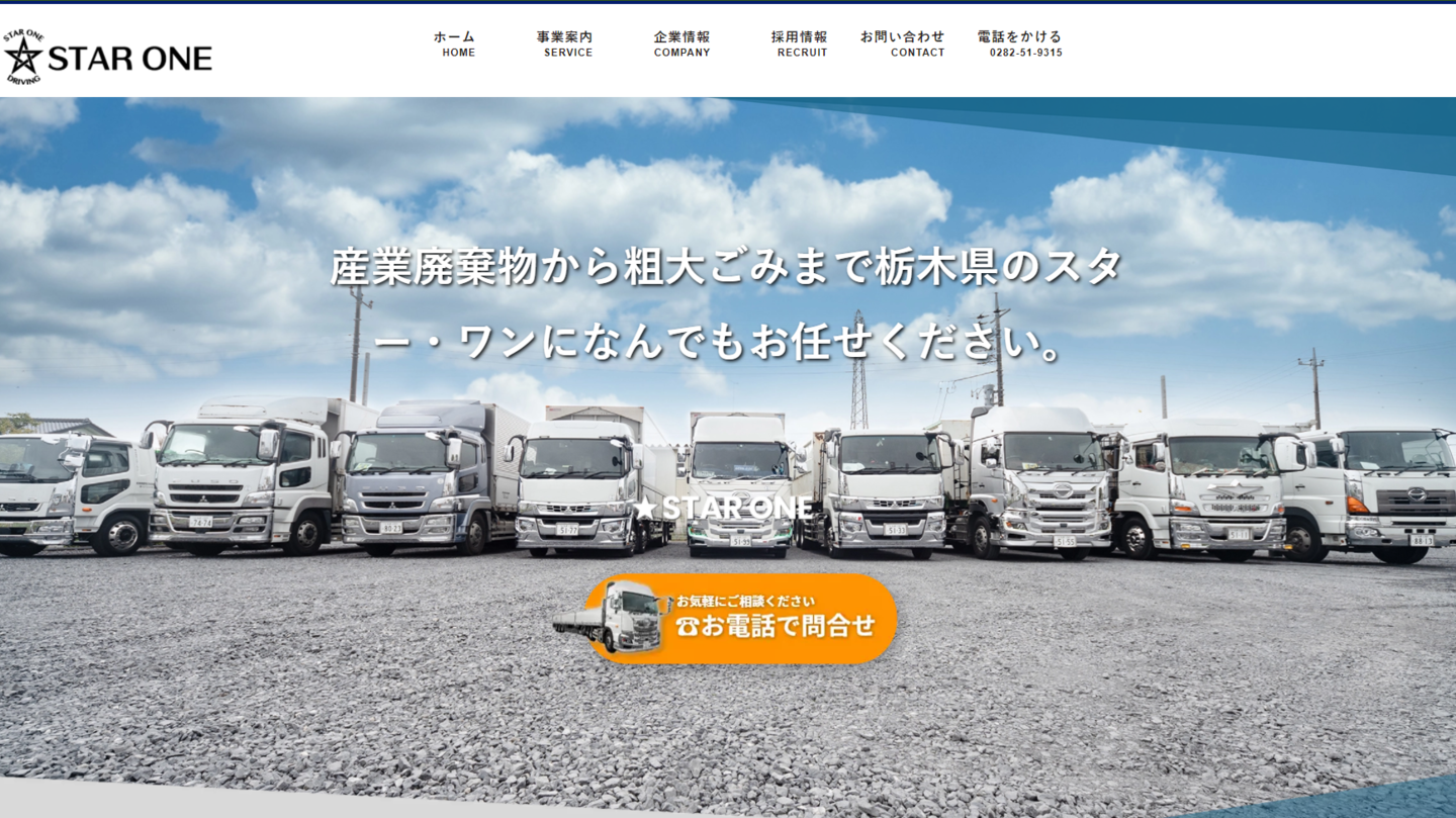 あらゆる産業廃棄物を取り扱い、関東から東北一円、東海地方まで幅広く許可エリアを取得し、大型を中心とした収集運搬を迅速に行っている栃木県栃木市のスター・ワン様のオフィシャルサイトを制作しました。