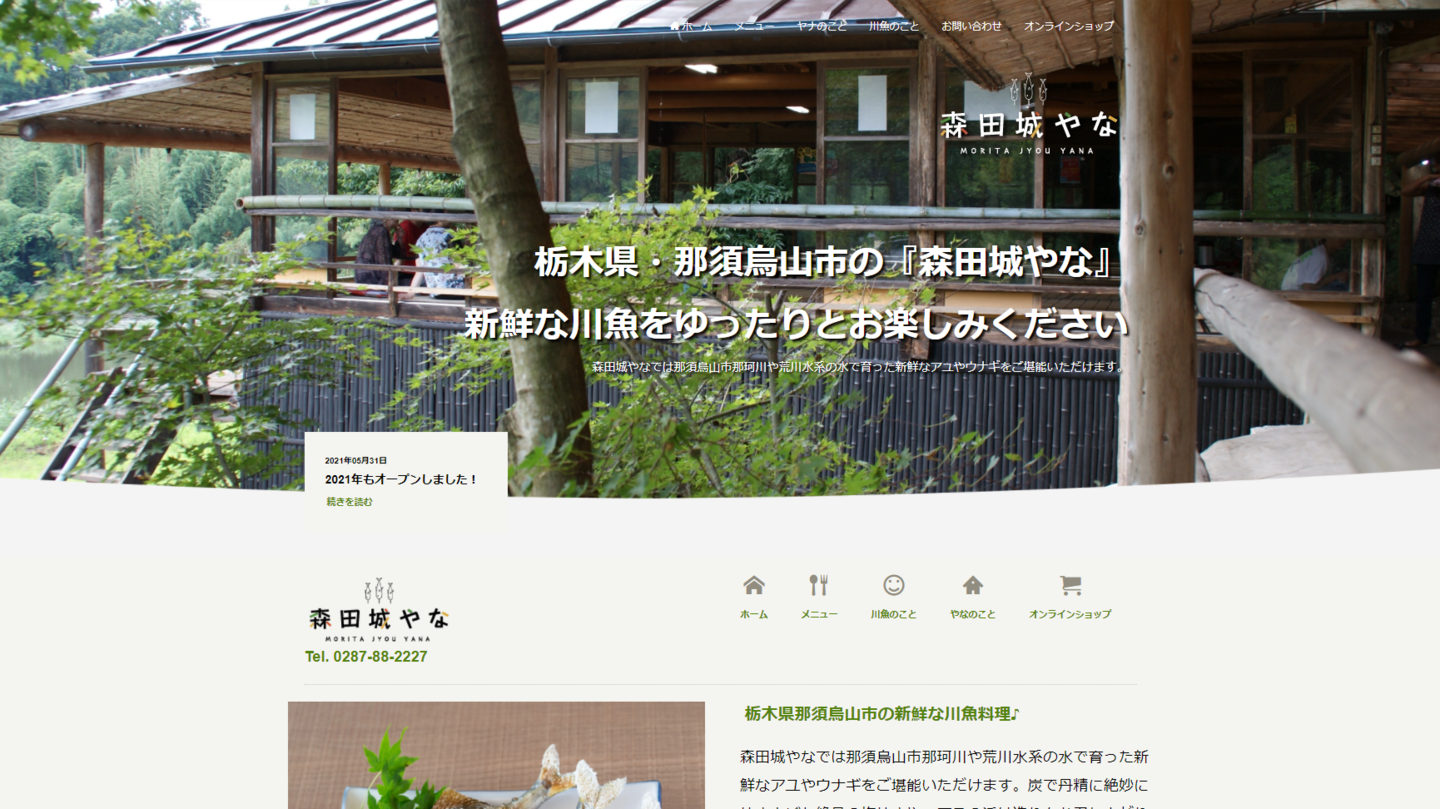 栃木県那須烏山市の那珂川や荒川水系の水で育った新鮮なアユやウナギを提供する森田城やな様のオフィシャルサイトを制作致しました。 炭で丹精に絶妙に焼き上げた絶品の塩焼きや、アユの活け造り、秘伝のたれを使用した鰻料理など人気メニューが多いので料理の美味しさが伝わる見え方にこだわり制作を行いました。